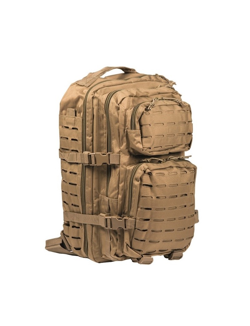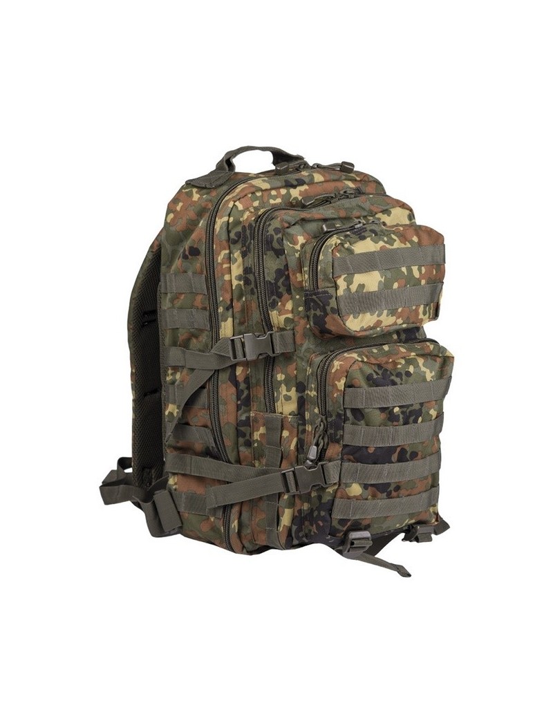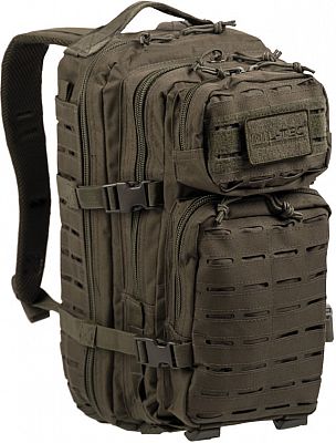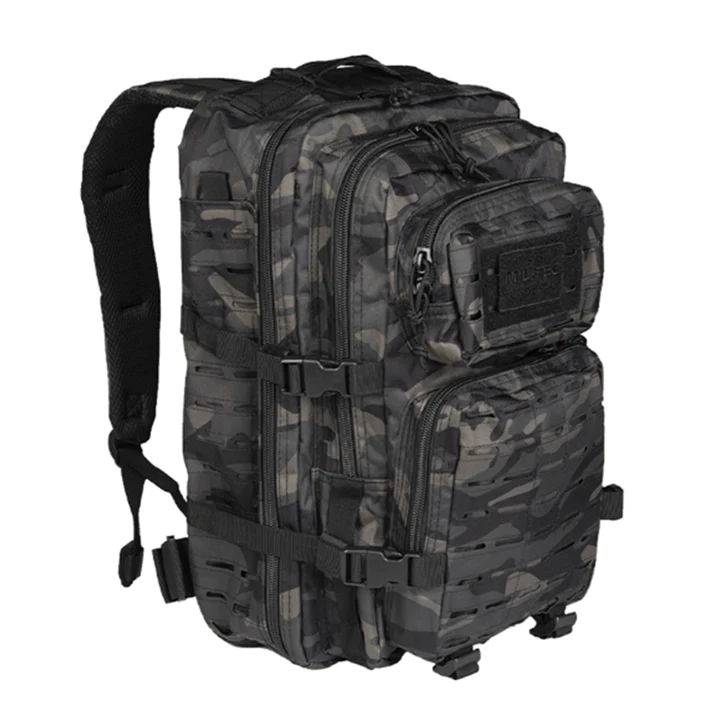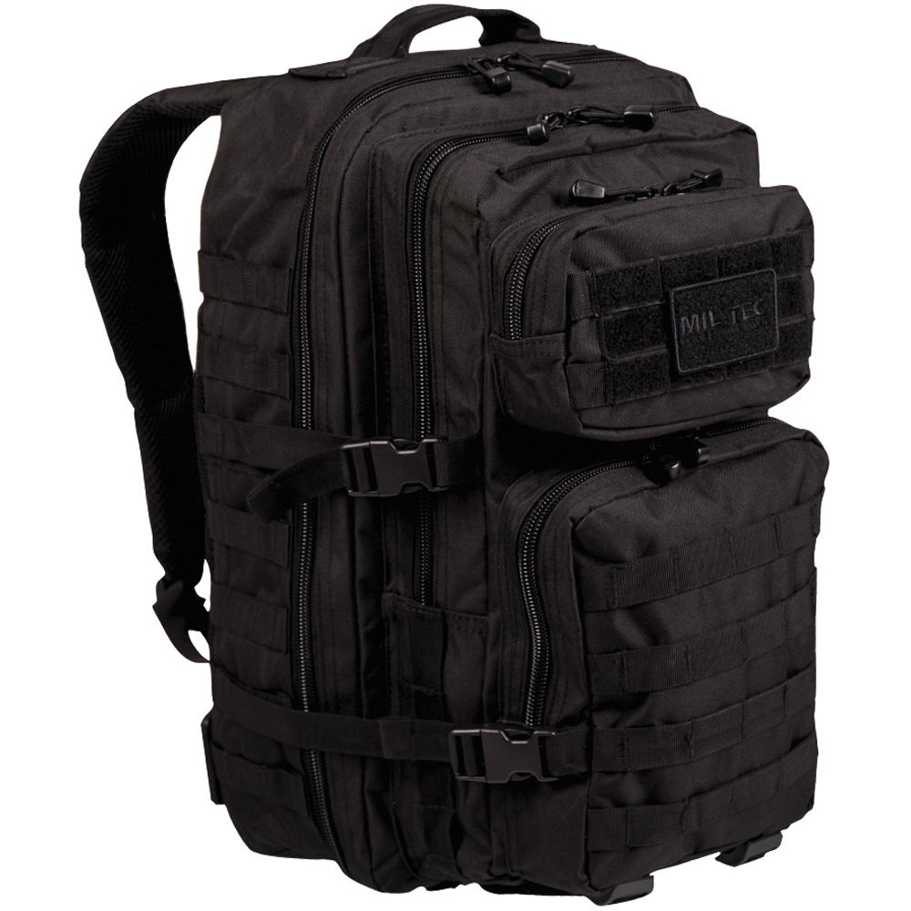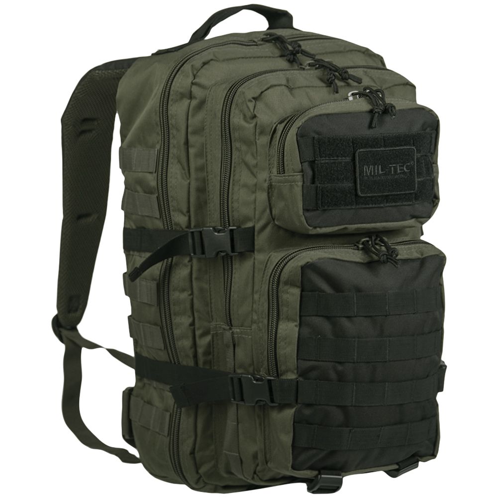 - costas acolchoadas - Alças de ombro acolchoadas de formato ergonômico, aproximadamente 5 cm de largura, ajustáveis em comprimento - ilhós para prender material adicional - cinto ajustável com fecho de liberação rápida - alça de transporte - 2 compartimentos grandes com vários compartimentos de zíper e malha - bolso frontal com organizador e compartimento adicional com zíper - todos os compartimentos com zíper de 2 vias - controle de volume e fixação da bagagem com cintas de compressão laterais - vários pontos de montagem Molle - compartimento de velcro integrado para Hydropack