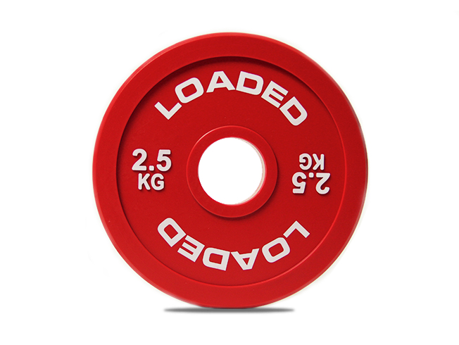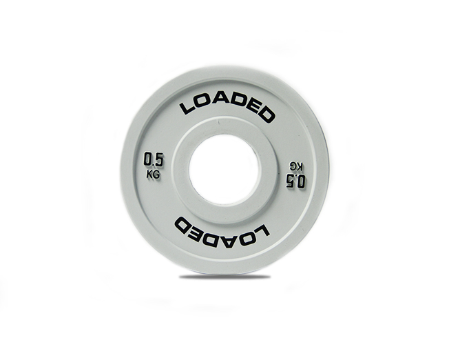 Loaded Equipment's Fractional Plates are sold in single units and they weights vary between 0,5KG, 1KG, 1,5KG, 2KG, 2,5KG. Each plate features a 50,4mm collar opening and an exterior rubber coating for a firm, steady hold on any type of barbell. An old school design combined with Loaded Equipment's white logo offers the plate a bold visual aspect with easy recognition from a distance.